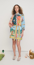 - Tasarım: Baskılı pamuklu keten gömlek ve şorttan oluşan iki parçalı set