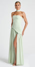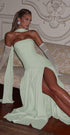 Tüm bakışları üzerine çekmeye hazır mısın? Maliyah Maxi Dress, modern siluetiyle klasik şıklığı yeniden tanımlıyor. Straplez üstü, asimetrik kesimli bel detayı ve bacak yırtmacıyla hem zarif hem güçlü bir görünüm sunuyor. Mint tonunun taze ve sofistike havası ise bu parçayı her davetin yıldızı haline getiriyor. Aynı tonlardaki eldiven ve fular ile kombinlendiğinde gerçek bir couture etkisi yaratır.