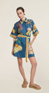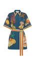 Mareblu Kuşaklı Deniz Desenli Gömlek Elbise
