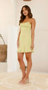 Sophia Mini Elbise ile şık şıklığı keşfedin. Bu mini uzunlukta elbise, ayarlanabilir ince askılara ve hoş bir uyum için büzgülü detaylara sahip yumuşak dolgulu bir göğüse sahiptir. Bükülmüş askılı açık sırt kısmı, incelikliliği bir miktar cazibeyle birleştirerek şık bir dokunuş katıyor.