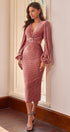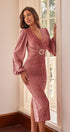 Marielle Rose Kadife Kuşaklı Midi Elbise
