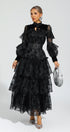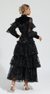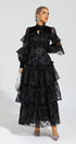 Kadife Mavisi Siyah Kuşaklı File Uzun Elbise