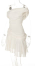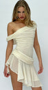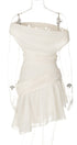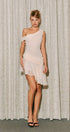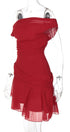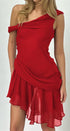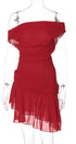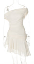 Tek Omuzlu Fırfırlı Şifon Elbise ile şıklığı kucaklayın. Bu diz boyu elbise, dramatik tek omuzlu yaka ve basamaklı fırfırlara sahiptir ve görünümünüze sofistike bir dokunuş katar. Asimetrik yan yırtmaç güzel bir şekilde örtülmekte ve elbisenin akıcı siluetini güçlendirmektedir.