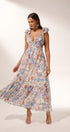 Marissa Kesikli Fırfırlı Uzun Elbise
