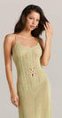 Bir yaz partisi veya şık bir bahçe partisi için ideal olan bu elbise, askılı sandaletler ve gösterişli bir el çantasıyla zahmetsizce eşleşir. Yumuşak örgü kumaş gün boyu rahatlık sağlarken, maksimum uzunluk zarif bir siluet sağlar. Resimlerdeki ışıktan dolayı rengin biraz değişebileceğini lütfen unutmayın.
