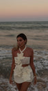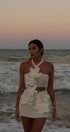 Benzersiz tarzınızı sergilemek için tasarlanmış Boyundan Bağlamalı Kesik Mini Elbise ile öne çıkın. Bu kolsuz mini elbise, eğlenceli örgü çiçek detaylarına sahip askılı bir yakaya ve silüetinizi öne çıkaran hoş bir kesim tasarımına sahiptir.