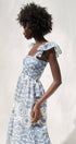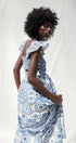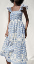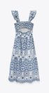 Maud İşlemeli Dantel Büzgülü Korsajlı Midi Elbise ile cesur bir atılım yapın! Çarpıcı mavi ve beyaz bir desene sahip olan bu gösterişli elbise, karmaşık işlemeleri göz alıcı büzgülü korsajla harmanlıyor. Her türlü özel durum için mükemmel olan bu ayakkabı, iddialı topuklu ayakkabılarla zahmetsizce eşleşerek cesur tarzınızı vurguluyor.