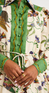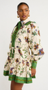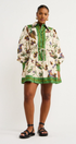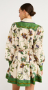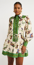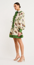 Bu sanatsal elbise, benzersiz bir grafiti baskısı ve tek sıra düğmeli tasarımıyla modern tarzı eğlenceli ayrıntılarla harmanlıyor. Uzun fener kolları hacim ve zarafet katarken, bel kravatı göz kamaştırıcı, sıkı bir siluet yaratıyor.
