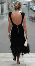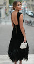 Bu midi elbise, şık, sırtı açık bir tasarıma ve eğlenceli bir dokunuş için eğlenceli püsküllere sahiptir. Orta esnekliğe sahip, vücuda oturan örgü polyesterden üretilen bu ürün, hoş bir siluet ve rahat bir uyum sunar.