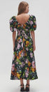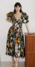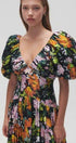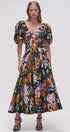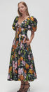 Megan Baskılı V Yaka Puf Kollu Midi Elbise