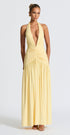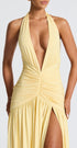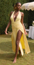 Güneş gibi parlamaya hazır ol. Melania Maxi Dress, derin V yaka kesimi, belden drapeli detayı ve uçuşan eteğiyle baş döndürücü bir yaz daveti görünümü sunar. “Less is more” diyenler için maksimal etki yaratan bu tasarım, feminen duruşun altını çiziyor. Tatil akşamlarından düğün konukluklarına kadar her ortamda ışıltınla fark yarat.
