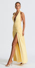 • Yüksek yırtmaçlı, uçuşan etek formu