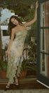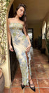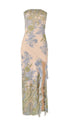 Melinda Baskılı Straplez Yırtmaçlı Midi Elbise