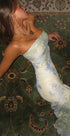 - Tasarım: Straplez, Fırfır Detaylı, Yırtmaçlı, Mavi ve Yeşil Tonlarında Toile de Jouy Desenli