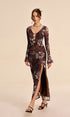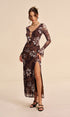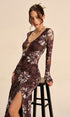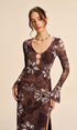 Yarı Şeffaf File Çiçek Desenli Kesik ve Yırtmaç Detaylı Elbise