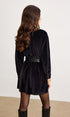 Metal Düğmeli Kemerli Kadife Elbise