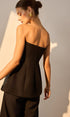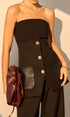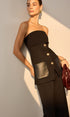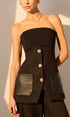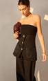 Metal Düğmeli Cepli Yırtmaçlı Straplez Bluz