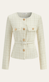 Metal Düğmeli Kemerli Tweed Blazer
