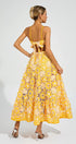 Michaelia Sarı Dekolteli Boyundan Bağlamalı Uzun Elbise