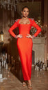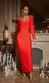 Mireille Kare Yaka Taşlı Bandaj Maxi Elbise