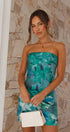 Bu çarpıcı askısız mini elbise, daha fazla zarafet için katlanmış şık göğüs detayına sahip, kendini ifade etmek için tasarlandı. Yaka boyunca uzanan silikon şerit güvenli bir uyum sağlarken, görünmez yan fermuar kolay giyilmesini sağlar.