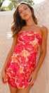 Miya Mini Elbise - Pembe/Kırmızı Çiçekli