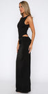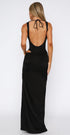 Estetik göz alıcı! Moonlight Muse Maxi Elbise Siyah, yüksek yakalı bir modeldir.ayarlanabilir, arkadan kendi kendine bağlanan askı, kalçada kesik tasarım, fırfırlı detay, etekte yan fermuar ve toka kapatma, yüksek yan yırtmaç detayı ve maksi uzunluk. Kutlamaya değer bir gece için katmanlı mücevherler ekleyin!