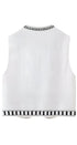 Şık baskılı desene sahip bu şık, tek sıra düğmeli yelek ceketle gardırobunuzu zenginleştirin. Dayanıklı polyesterden üretilen dar kesim tasarımı ve klasik yuvarlak yakası, şık ve göz alıcı bir siluet oluşturur. Göz alıcı baskı, zarif bir görünümü korurken çağdaş bir dokunuş katıyor.