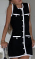 Çok Cepli Düğmeli Kolsuz Kısa Kazak Elbise