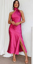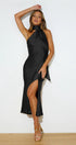 Nad Cowl Halter Yaka Saten Midi Elbise
