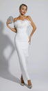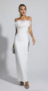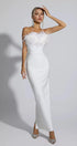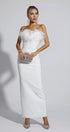 Naomi Beyaz Tüy Püsküllü Uzun Elbise