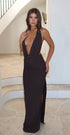 Çikolata rengindeki Maxi Elbise ile gösteriyi çalın. Kendinden bağlamalı askılı askılı askılı askılı, ultra derin göğüs dekolteli, maksi uzunlukta, yandan yırtmaçlı, sırtı açık, file astarlı, vücuda oturan kesim ve kolayca giyilebilen esnek malzeme. Elbisenin her şeyi anlatmasını sağlamak için topuklu ayakkabılar ve siyah omuz çantası ile stil yapın!