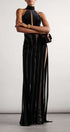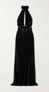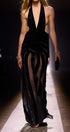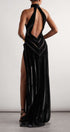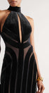 Novia Boyundan Bağlamalı Cut-Out Kadife Maxi Elbise