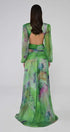 Bu çarpıcı maksi elbise, V yakalı, kabarık kollu ve dramatik kesimli, zarafet ve modern tarzın mükemmel bir karışımıdır. Şifondan yapılmış olup, ince bir siluet için tasarlanmıştır, maksimum uzunluk ve yan yırtmaçlar ise etkileyicilik katar.