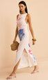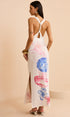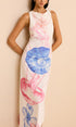 Okyanus Desenli Uzun Elbise Yırtmaçlı