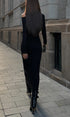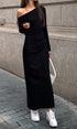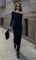 Omuz Açık Yivli Uzun Kollu Örme Uzun Elbise