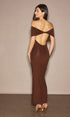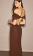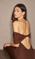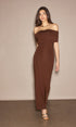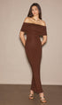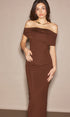 Omuzları Açık Kırışık İnce Uzun Elbise