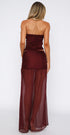 Sahne Işıltısı Etek – Bordo, biraz daha fazla ihtişam gerektiren geceler için vazgeçilmeziniz! Görünmez yan fermuarlı ve tokalı ince bir bel bandına sahip, düşük veya orta belde giyilebilen, yanda fırfırlı detaylara, kısmen astarlı ve yüksek yan yırtmaç detaylarına sahip. Bayıldığımız uyumlu bir an için Sahne Işıltısı Straplez Üst ile kombinleyin!