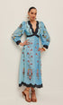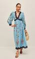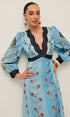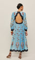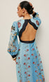 Sırtı Açık Puantiyeli Balon Kollu Çiçek Desenli Elbise