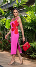 Bu midi elbise, şık kesimli korsaj ve göz kamaştıran U yaka ile canlı çiçek baskısına sahiptir. Kolsuz tasarım yaza hazır çekiciliğini artırırken, orta esneklikte polyester kumaş rahat ve güzel bir uyum sağlar.