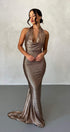 Ophelia Boyundan Bağlı Sırtı Açık Uzun Elbise