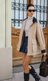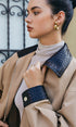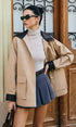 Büyük Boy Kontrast Yaka Bağcıklı Suni Deri Ceket