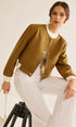 Büyük Boy Yuvarlak Yaka Kontrast Kesim Düğmeli Ceket