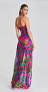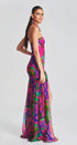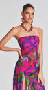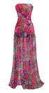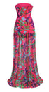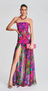 Pam Baskılı Straplez Yırtmaçlı Uzun Elbise