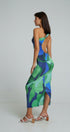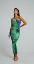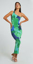 Pamela Baskılı Plise Dekolteli Bodycon Maxi Elbise