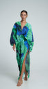 Pamela Baskılı Büzgülü Maxi Kapak Elbise