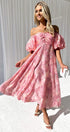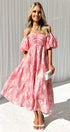 Patricia Omuzları Açık Puf Kollu Midi Elbise