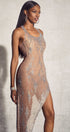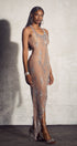 Paula Asimetrik Taşlı Uzun Elbise