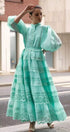 Paula İşlemeli Dantel Puf Kol Maxi Elbise