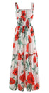 Pauline Baskılı Büzgülü Askılı Maxi Elbise